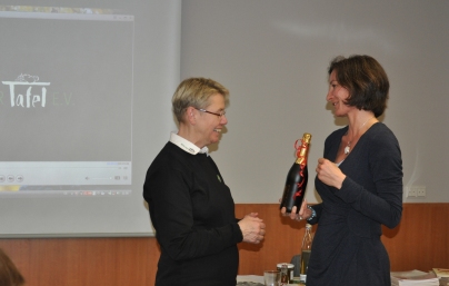 Sabine Werth, seit 26 Jahren Inhaberin der Familienpflege Sabine Werth, ist Gründerin und Vorsitzende der Berliner Tafel. Zudem ist sie ob ihres sozialen Engagements Trägerin des Verdienstordens des Landes Berlin (1995), des Bundesverdienstkreuzes (2003) und der Berliner Ehrennadel (2013). Sie informierte an diesem Clubabend kurzweilig und mitreißend über die Arbeit und die Besonderheiten der Berliner Tafel, aber auch über ihren eigenen Start die Familienpflege.